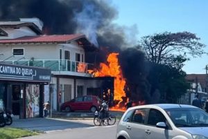 Imagens que circulam nas redes sociais mostram o local em chamas, com uma densa coluna de fumaça. Também é possível observar que a área atingida fica próxima de residências e outros estabelecimentos comerciais.