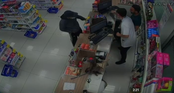 Criminoso simulou estar armado, roubou dinheiro do caixa e teve a ação registrada por câmeras de segurança