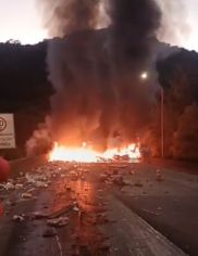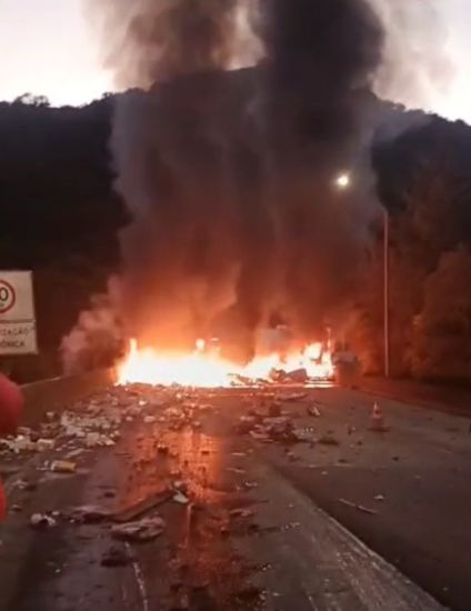 A rodovia permanece totalmente bloqueada no sentido Sul, sem previsão de liberação do tráfego. O bloqueio começa na altura do km 662 e, por volta das 7h, o congestionamento já se estendia por cerca de oito quilômetros, segundo a concessionária Arteris Litoral Sul, responsável pela administração da via.