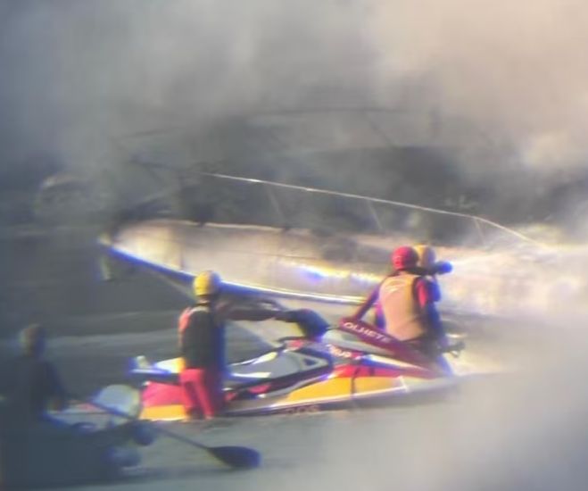 De acordo com o Corpo de Bombeiros Militar, as equipes foram acionadas e enviaram um caminhão e duas motos aquáticas, uma delas equipada para o combate às chamas. Quando os bombeiros chegaram ao local, a embarcação, de aproximadamente 36 pés, já havia sido rebocada até uma área rasa próxima à praia por outra lancha.