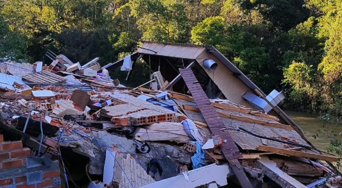 Um jovem de 23 anos ficou ferido após o desabamento de um prédio de dois andares na tarde desta segunda-feira (11) em Ibirama, no Alto Vale do Itajaí. O acidente ocorreu por volta das 15h16, quando quatro apartamentos caíram diretamente no leito do Rio Hercílio.